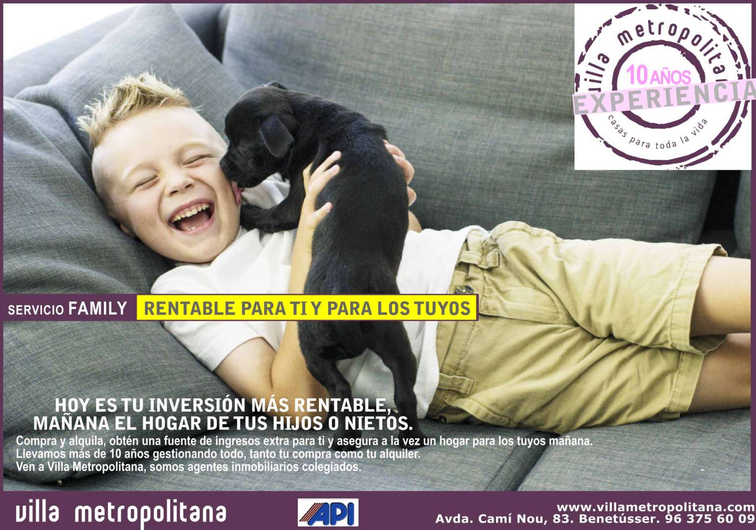 Los niños no deberían acceder a Internet sin la supervisión de sus padres o tutores. Servicios Inmobiliarios Valencia Metropolitana, S.L. no almacenará o empleará de forma consciente ninguna información personal enviada por niños para ningún propósito.